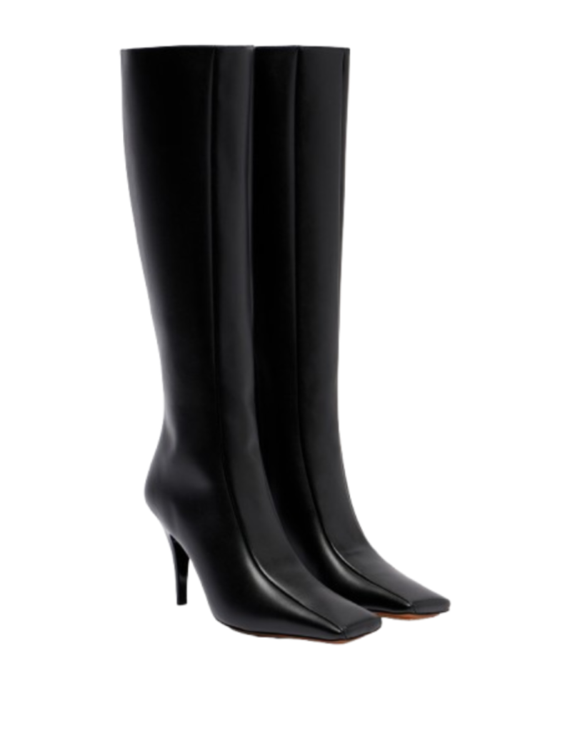For when you want the drama of a knee-high stiletto, minus the “is this leather?” question. The Eve boot is known for a sharp, modern shape (square toe, tall shaft) and a leg-lengthening heel, with retailers citing a ~100mm stiletto. It’s the pair that turns a sweater dress into a look, and makes the coat-check mirror your friend.