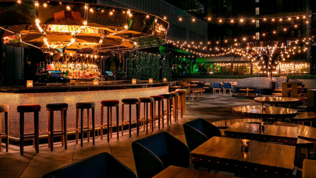 Lower East Side energy doesn’t get more iconic than MR. PURPLE at Hotel Indigo. This rooftop hotspot brings classic NYC skyline vibes with a modern, artsy twist—perfect for sunset cocktails or late-night DJ sets. The hotel itself is equally guest-friendly, with vegetarian breakfast options, self-parking, free WiFi, a 24-hour fitness center, and a pet-friendly policy (because your furry friend deserves skyline views too). MR. PURPLE manages to balance lounge-style elegance with high-energy nightlife, making it one of my top picks when you want a rooftop bar that feels both exclusive and effortlessly cool.