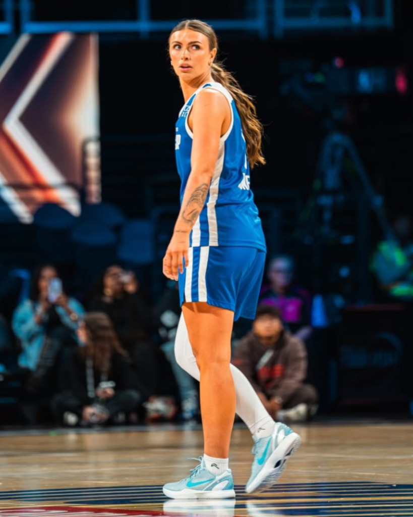 For Carson, getting dressed for a game always starts from the ground up. “I always start with shoes,” she says. “Unless there’s a rare occasion where I have a very unique piece I want to style, like a really cool jacket or a flashy bag. I’ve been into shoes and collecting them for a really long time, and I love basing my outfit off of a shoe.” That mindset is what makes her looks feel effortless. Nothing feels random. Everything has a reason.