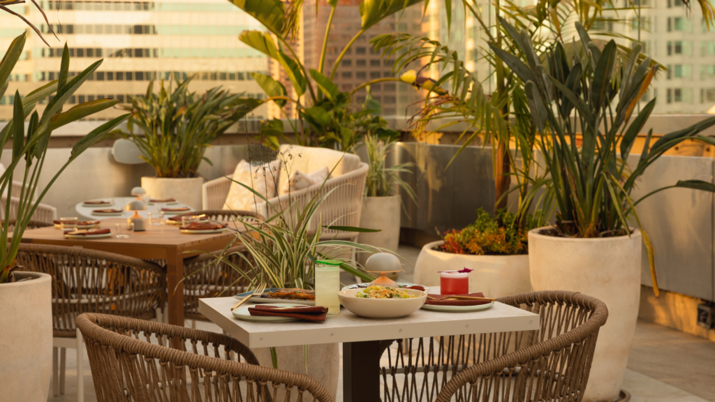 The Delphi Hotel’s newest rooftop, ÜCA, blends LA’s love for skyline views with Latin flavors and agave-based cocktails.