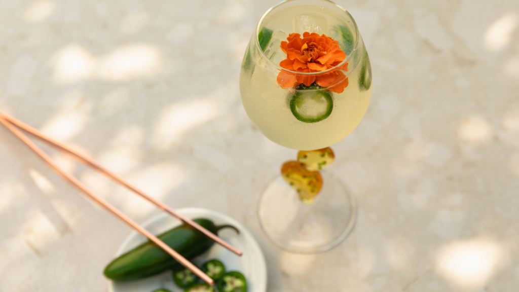 For round two, I couldn’t resist the Aloe Healing, a jalapeño-kissed cocktail that arrived with a soft green glow that looked as refreshing as it tasted. It was fresh, fiery, and surprisingly balanced, the kind of drink that leaves you feeling like you discovered a secret menu item, even though it’s right there in print.