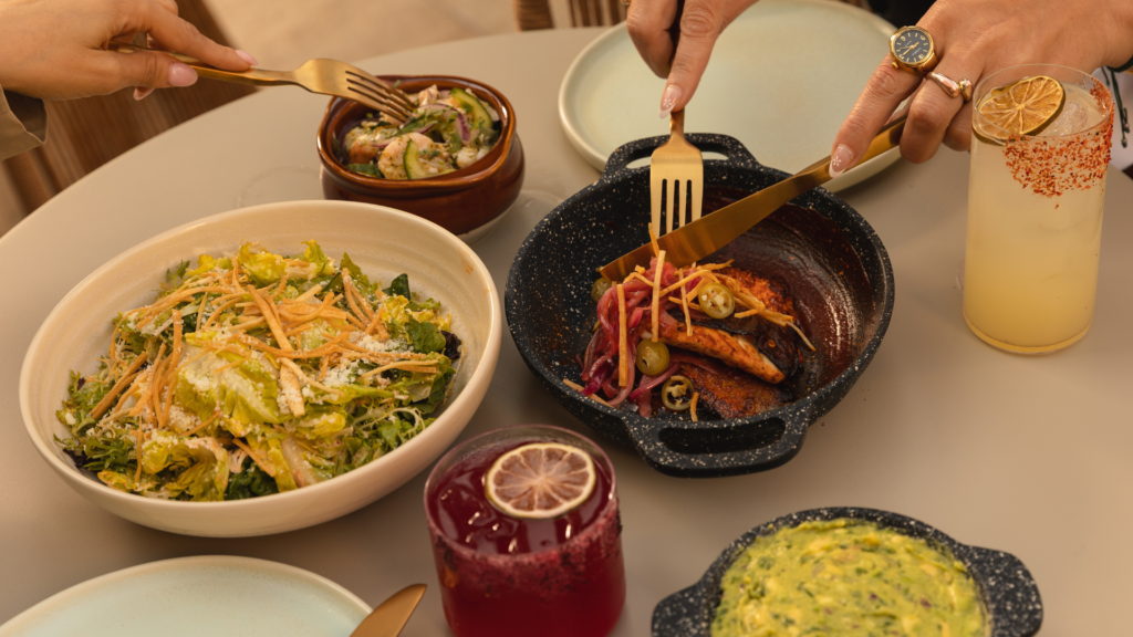 ÜCA doesn’t just rely on pretty drinks and skyline views; the food is just as memorable. The menu takes Latin-inspired flavors and fuses them with fresh California touches. Shared plates circled the tables all night, but the clear winner was the Selección De Salsas. Simple, yes, but when salsas are this fresh, spicy, and endlessly dippable, it’s basically impossible to stop. Other dishes followed that same lively rhythm of bold flavor meets bright freshness. Each bite had that satisfying balance of spice and zest that pairs perfectly with tequila and mezcal-heavy cocktails.