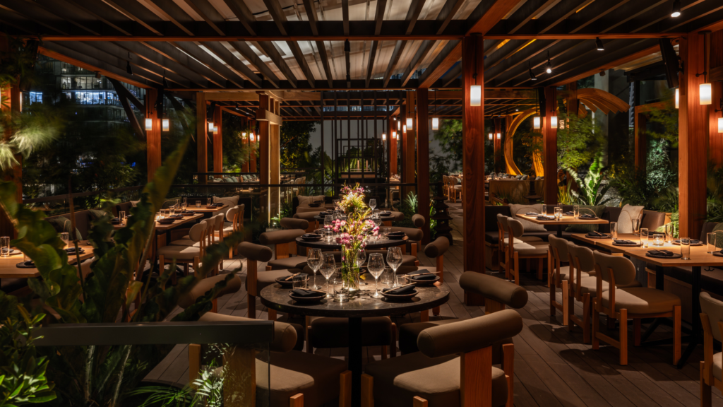 Yamashiro Miami is the first Miami outpost of the legendary Los Angeles restaurant. Located on the 9th floor of the Gale Miami Hotel & Residences, it features Japanese-inspired architecture and panoramic city views. Chef Charbel Hayek blends traditional Japanese flavors with modern interpretations. This rooftop restaurant is perfect for dinner and cocktails while enjoying Miami’s skyline during Art Basel 2025.