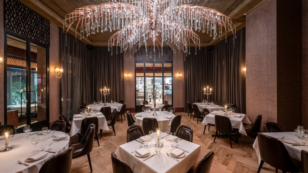 For a NYE dinner that feels like a travel experience, Japón at The Setai offers an immersive “Midnight in Marrakesh” five-course menu with a sommelier wine pairing, belly dancers, aerial performances, and a Louis Roederer Cristal toast before dancing under the stars.