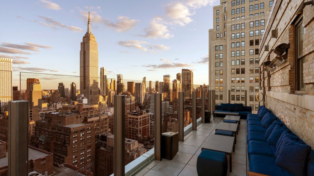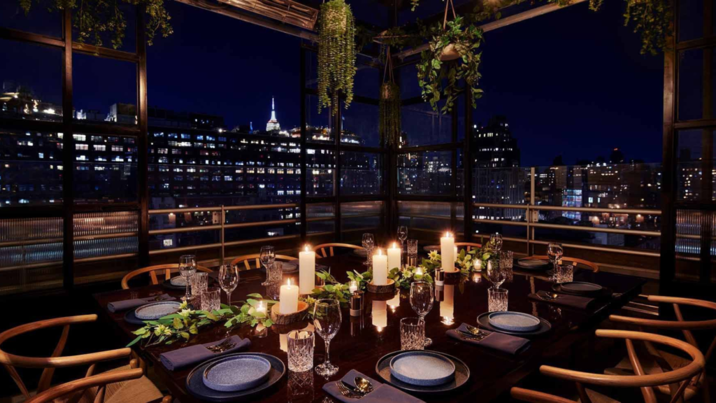 Blending Art Deco interiors with panoramic views, Ophelia stands out among NYC rooftop lounges. It is equal parts glamorous and energetic, making it a strong choice for a stylish night out.