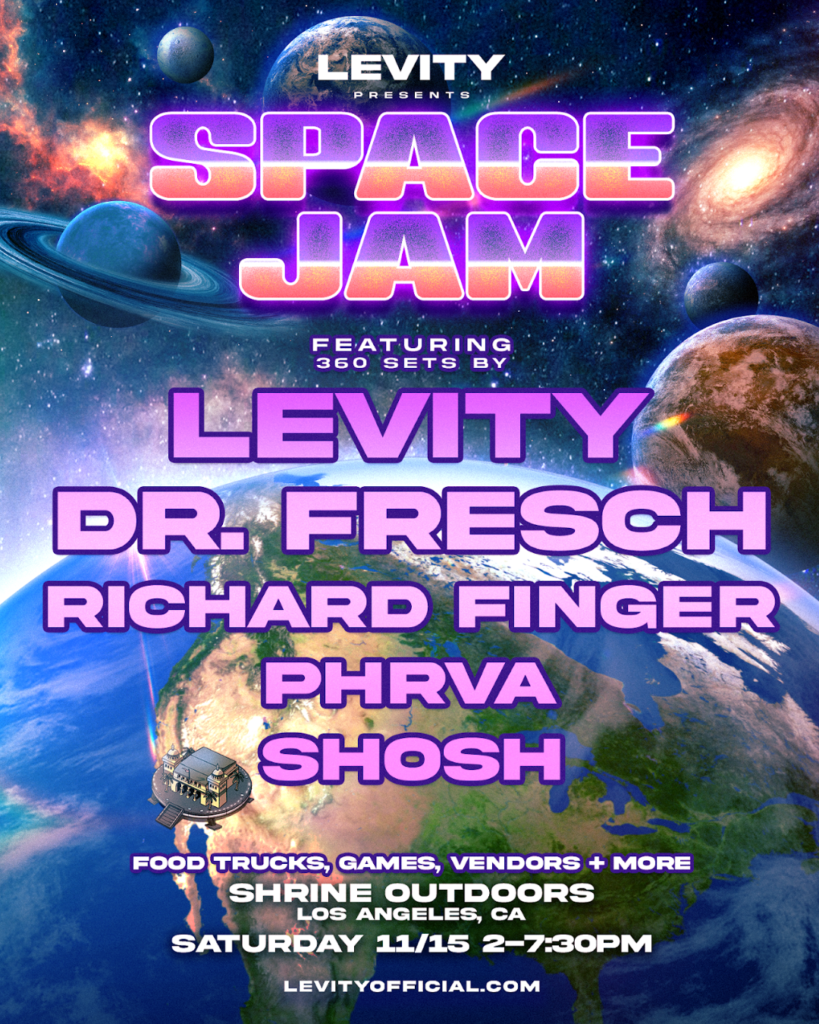 Los Angeles, meet your next daytime obsession. On Saturday, Nov. 15, breakout EDM trio, Levity, is taking over Shrine LA Outdoors for SPACE JAM: the first-ever outdoor daytime 360° dance experience in the venue’s history. From 2-7:30 p.m., expect a full-throttle blend of sunshine, surround-sound energy, and the most lasers Shrine has ever fired up before sunset.
