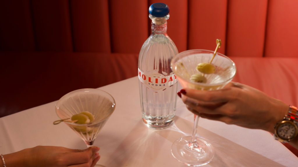 The brand itself started with a simple observation at a dinner table. Holiday Vodka founder Anna Goldman remembers realizing that, while everyone had ordered martinis, almost nobody had a real preference for the vodka in their glass. “I started asking around to friends, bartenders, strangers, and almost nobody could name a vodka they truly loved. There were plenty of brands, but nobody talked about their vodka the way they talked about their favorite tequila or whiskey,” she says. That sparked the vision for Holiday Vodka: a spirit people feel something for, one that belongs on the table during long dinners, spontaneous toasts, and moments spent celebrating with everyone you love.