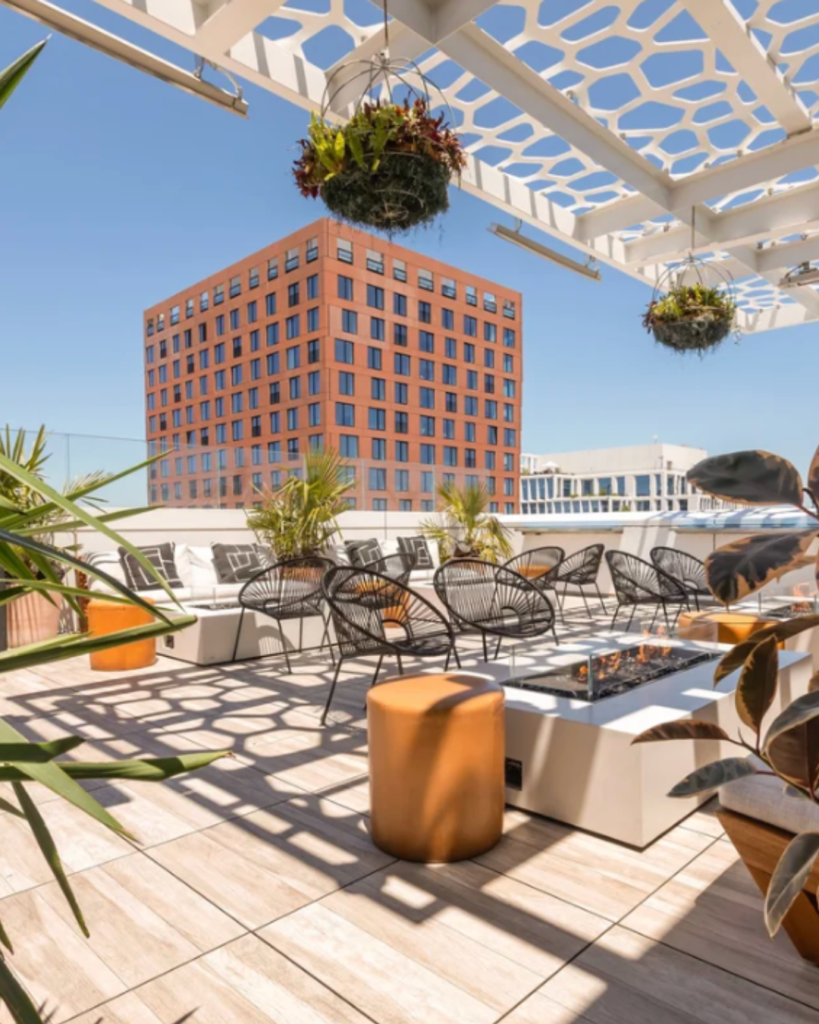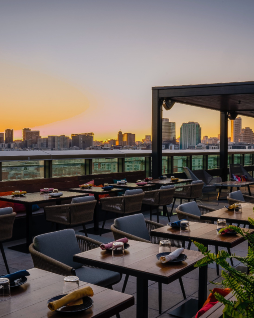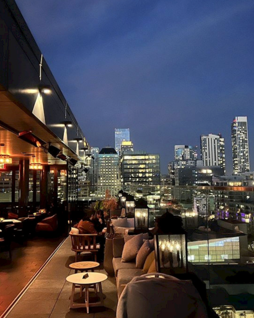 Perched atop The Proper Hotel, Charmaine’s surrounds you with views of Market Street’s evolving skyline and city bustle. Fire pits flicker amid intimate seating, while the indoor-outdoor layout balances a sophisticated terrace flare with relaxed California energy. It’s the kind of rooftop that undeniably makes the city feel alive, and turns every gathering into a memorable moment.