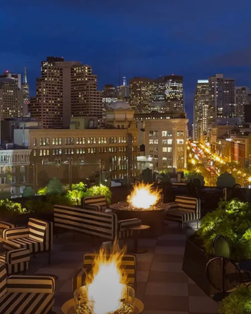 Starlite is like a slice of SF history with a breathtaking view to match. Cable cars rumble below while the city’s glow stretches to the Bay Bridge, all from a lounge that balances classic glamor with a modern, lively energy. Found on top of the Beacon Grand Hotel, this is a rooftop where the drinks don’t disappoint, the all-vinyl soundtrack spins late, and the skyline feels like it’s part of the party.